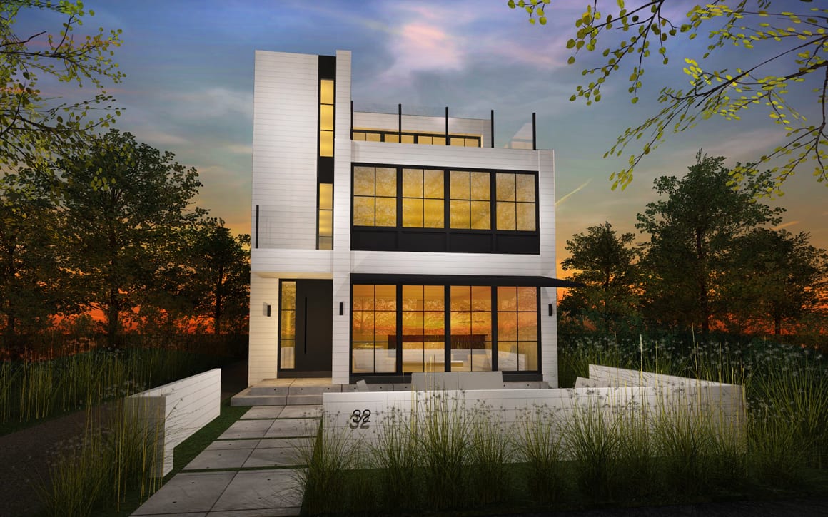 Located in Grand Bend along the Lake Huron shoreline, this small multi-family residence is designed as a contemporary lakeside refuge. Clean white volumes and large glazed openings frame expansive views while drawing natural light deep into the interior. Landscaped terraces and planted edges extend living spaces outdoors, establishing a quiet dialogue between architecture, sky, and the surrounding coastal landscape.